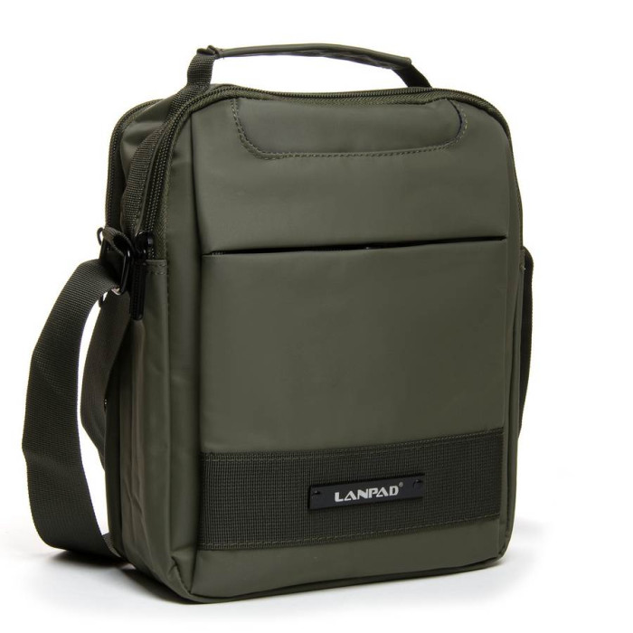 Мужская сумка Lanpad. Два отделения, закрываются на молнию. Внутри отделения расположен карман на молнии. На фасаде находится большой открытый карман и карман на молнии. На обратной стороне есть карман на молнии. Регулируемый плечевой ремень шириной 4см..