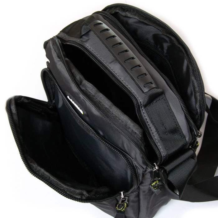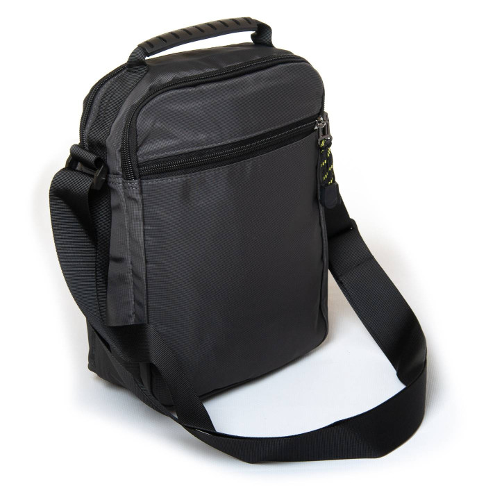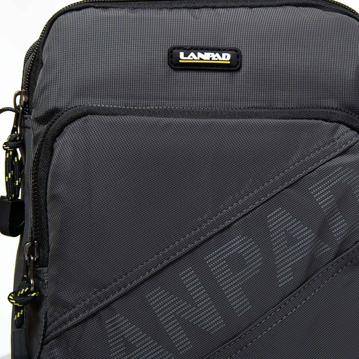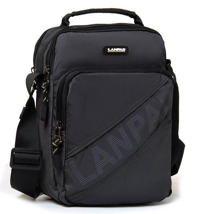 Мужская сумка-планшет Lanpad. Два отделения, закрываются на молнию. Внутри отделений расположен карман на молнии. На фасаде и на обратной стороне есть большие карманы на молнии. Регулируемый плечевой ремень шириной 4см.