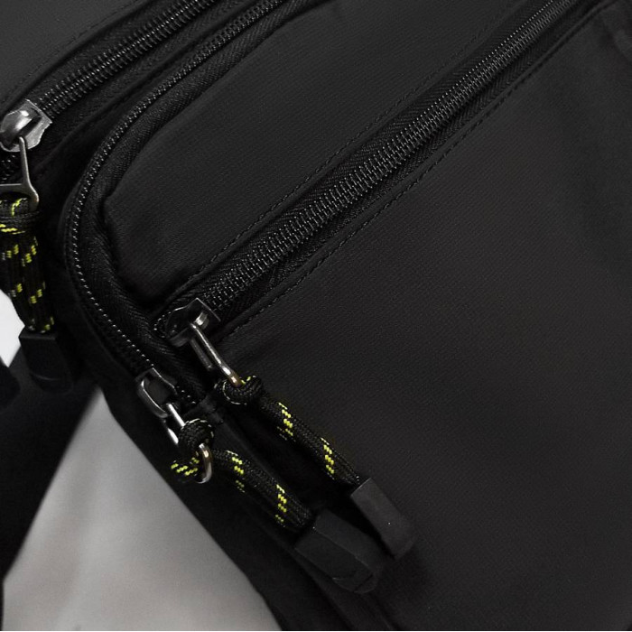 Мужская большая сумка Lanpad. Два отделения, закрываются на молнию. Внутри есть карман на молнии. На фасаде сумки находятся 3 больших карман на молнии и на обратной стороне есть один карман на молнии. Регулируемый плечевой ремень шириной 4см.