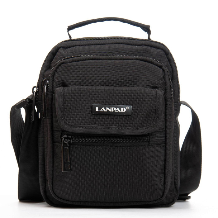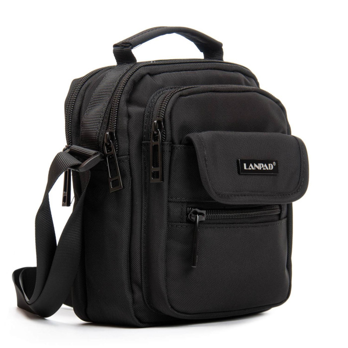 Мужская сумка-планшет Lanpad. Два отделения, закрываются на молнии. Внутри отделений есть боковой карман на молнии. На фасаде расположены 3 кармана: два закрываются на молнию, а один клапаном на магните.
