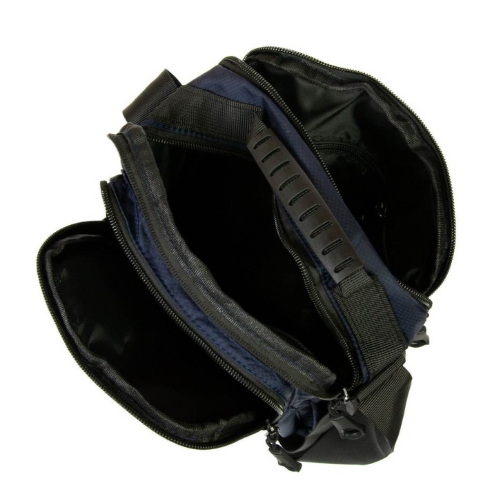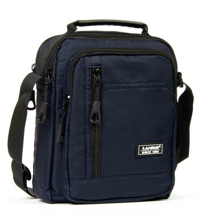 Мужская сумка Lanpad. Два отделения, закрываются на молнию. Внутри отделения расположен карман на молнии и открытый карман. На фасаде находятся 2 кармана на молнии и на обратной стороне есть один карман на молнии. Регулируемый плечевой ремень шириной 4см..