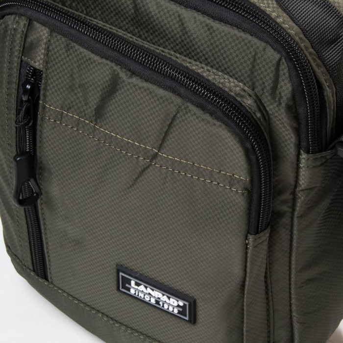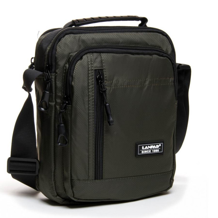 Мужская сумка Lanpad. Два отделения, закрываются на молнию. Внутри отделения расположен карман на молнии и открытый карман. На фасаде находятся 2 кармана на молнии и на обратной стороне есть один карман на молнии. Регулируемый плечевой ремень шириной 4см..