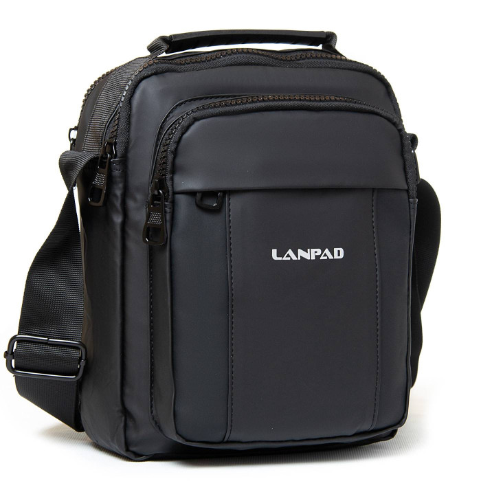 Мужская сумка-планшет Lanpad. Два отделения, закрываются на молнию. Внутри отделений расположен карман на молнии и открытый карман. На фасаде расположены два карман на молнии. На обратной стороне есть один карман на молнии. Регулируемый плечевой ремень шириной 4см.
