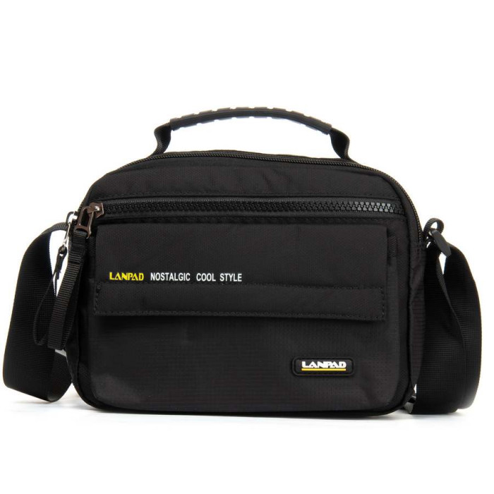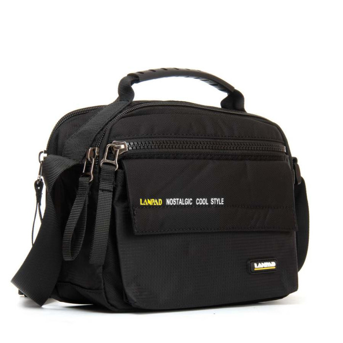 Мужская сумка Lanpad. Два отделения, закрываются на молнию. Внутри отделений есть карман на молнии и открытый карман. На фасаде находится карман на молнии и карман под клапаном, а на обратной стороне расположен один карман на молнии. Регулируемый плечевой ремень шириной 3см..