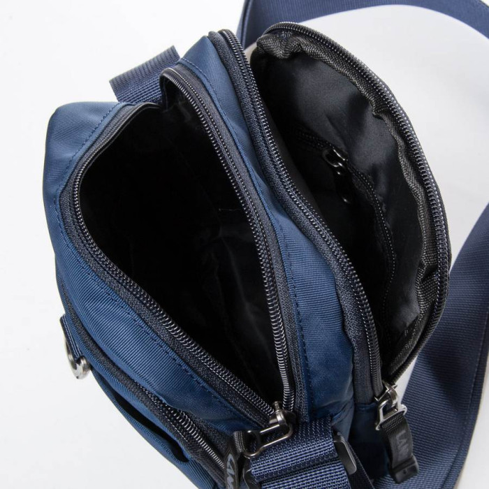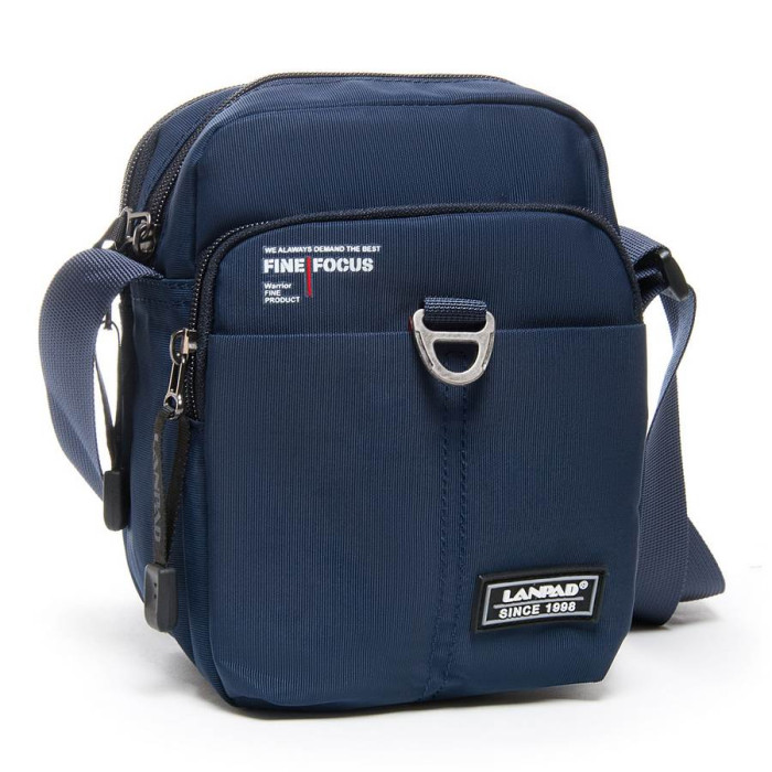 Мужская сумка Lanpad. Два отделения, закрываются на молнию. Внутри отделений расположен карман на молнии. На фасаде расположены карман на молнии и карман на липучке. На обратной стороне есть карман на молнии. Регулируемый плечевой ремень.