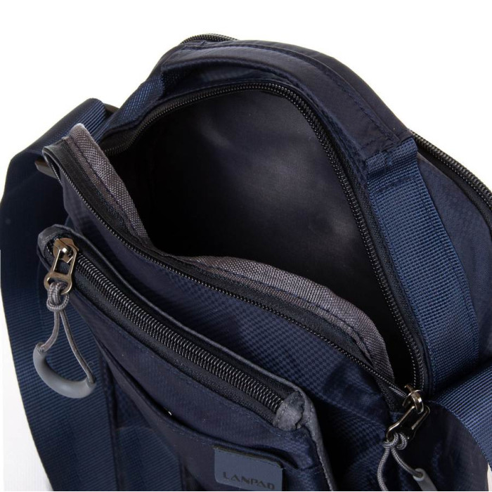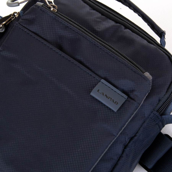 Мужская сумка Lanpad. Два отделения, закрываются на молнию. Внутри отделений расположен карман на молнии и открытый карман. На фасаде расположены два карман на молнии. На обратной стороне есть карман на молнии. Регулируемый плечевой ремень.