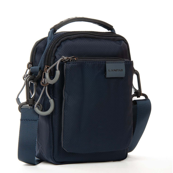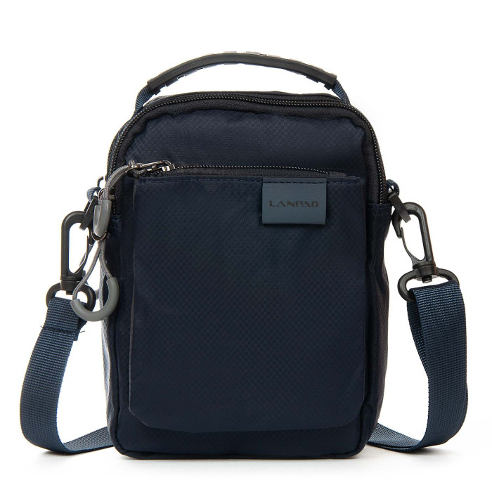 Мужская сумка Lanpad. Два отделения, закрываются на молнию. Внутри отделений расположен карман на молнии и открытый карман. На фасаде расположен карман на молнии. На обратной стороне есть крепление для поясного ремня. Регулируемый плечевой ремень в комплекте.