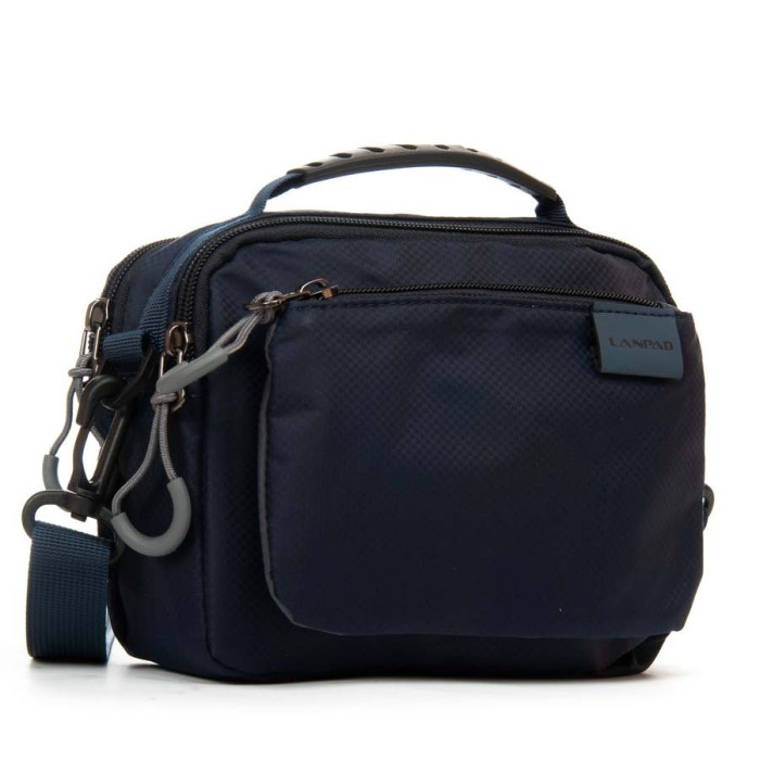 Мужская сумка Lanpad. Два отделения, закрываются на молнию. Внутри отделений есть карман на молнии и открытый карман. На фасаде расположен карман на молнии. Снаружи сумки на обратной стороне есть крепление на пояс. В комплекте регулируемый плечевой ремень, шириной 2,5 см.