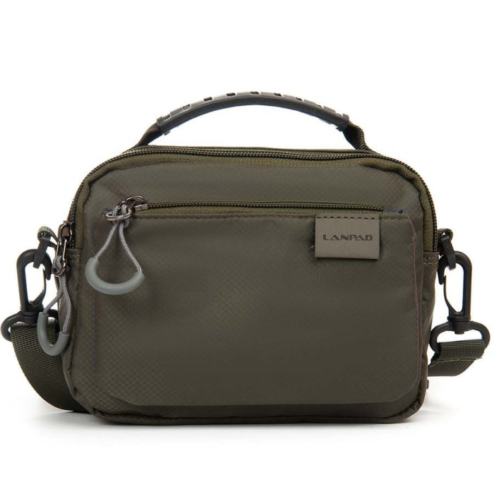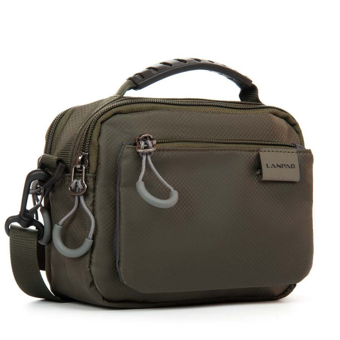 Мужская сумка Lanpad. Два отделения, закрываются на молнию. Внутри отделений есть карман на молнии и открытый карман. На фасаде расположен карман на молнии. Снаружи сумки на обратной стороне есть крепление на пояс. В комплекте регулируемый плечевой ремень, шириной 2,5 см.