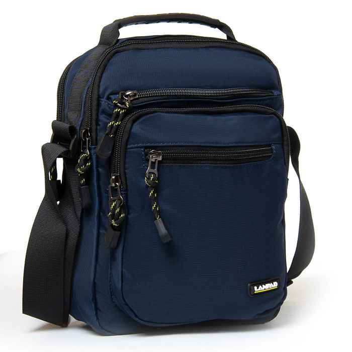 Мужская сумка-планшет Lanpad. Два отделения, закрываются на молнию. Внутри отделений расположен карман на молнии. На фасаде находятся три кармана на молнии. Регулируемый плечевой ремень шириной 4см.