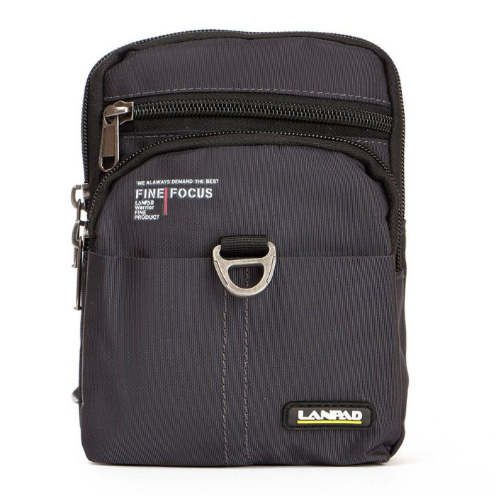 Мужская сумка - планшет Lanpad. Одно отделение, закрывается на молнию. Внутри есть боковой карман на молнии. На фасаде сумки находятся два кармана на молнии и один на застежке-липучке. На обратной стороне сумки есть крепление на пояс.