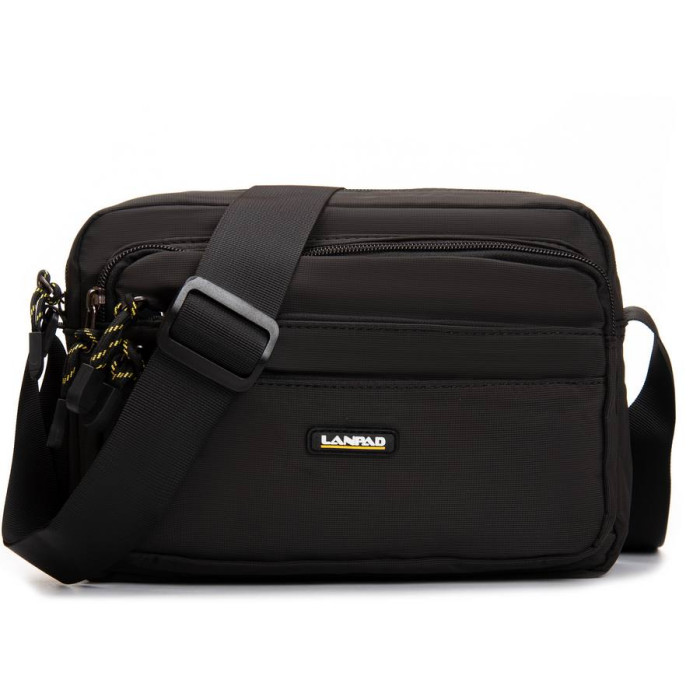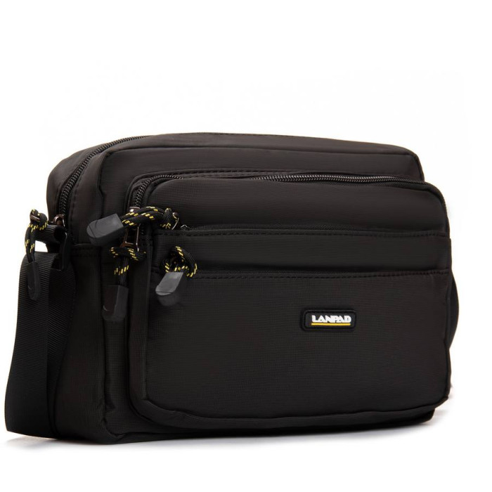 Мужская горизонтальная сумка кросс-боди Lanpad. Одно отделение, закрывается на молнию. Внутри отделения есть боковой карман на молнии и открытый карман. На фасаде расположены 3 вместительных кармана на молнии, а на обратной стороне один большой карман на молнии.