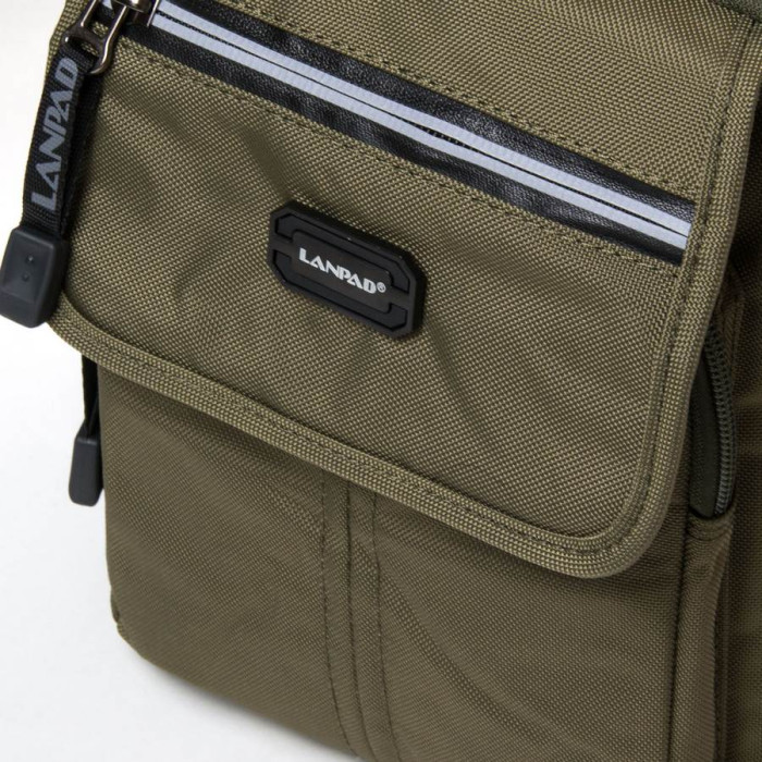 Мужская сумка Lanpad. Два отделения, закрываются на молнию. Внутри отделения расположен карман на молнии и открытый карман. На фасаде под клапаном находится большой карман на молнии. На обратной стороне есть карман на молнии. Регулируемый плечевой ремень.