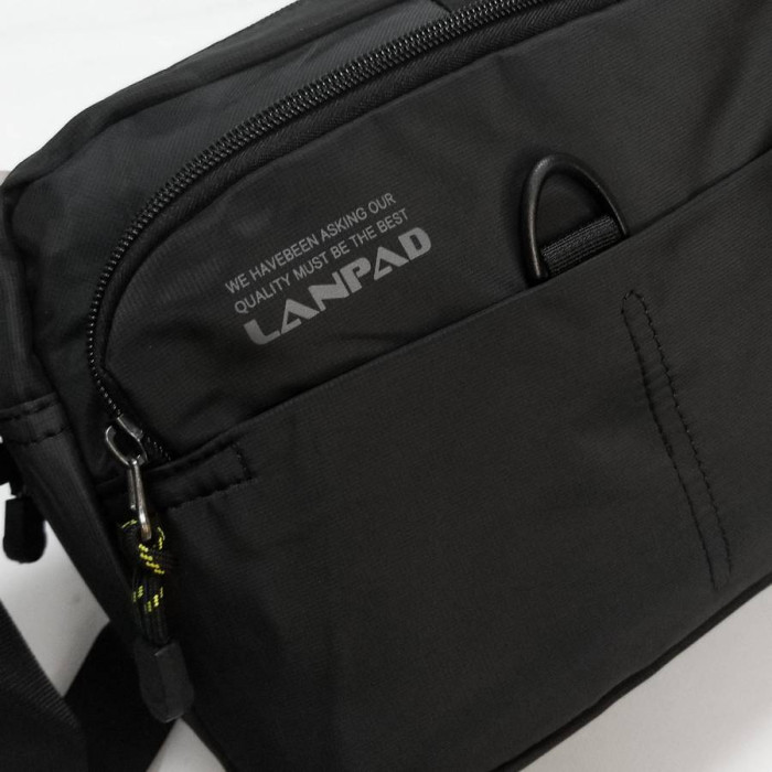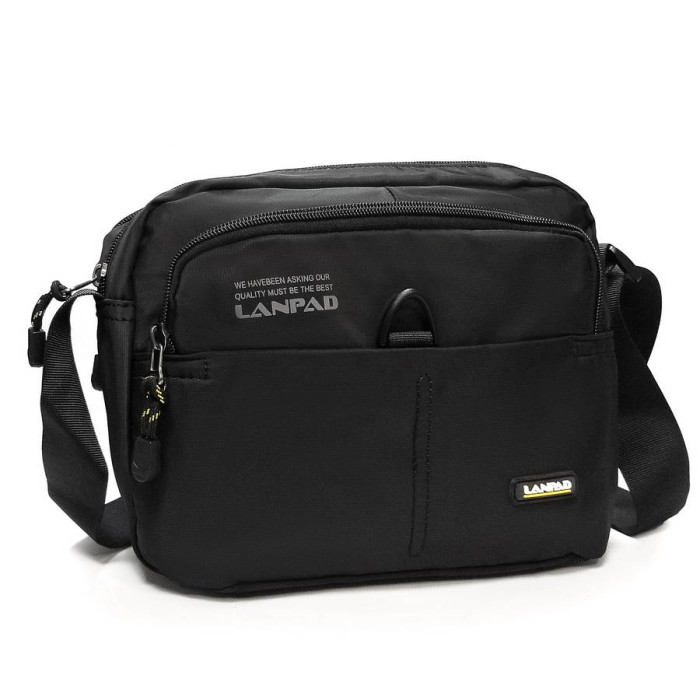 Мужская горизонтальная сумка-планшет Lanpad. Два отделения, закрываются на молнию. Внутри отделения есть карман на молнии и открытый карман. На фасаде находится большой карман на молнии и карман на застежке-липучке. На обратной стороне есть один карман на молнии. Регулируемый плечевой ремень шириной 4см.