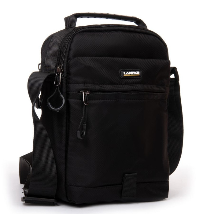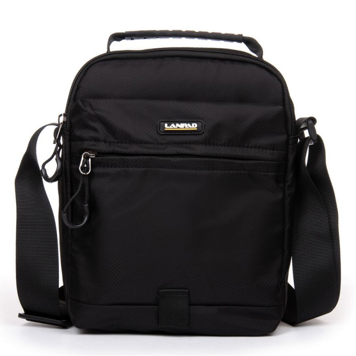 Мужская сумка-планшет Lanpad. Два отделения, закрываются на молнию. Внутри отделения расположен карман на молнии и открытый карман. На фасаде и обратной стороне есть большие карманы на молнии.