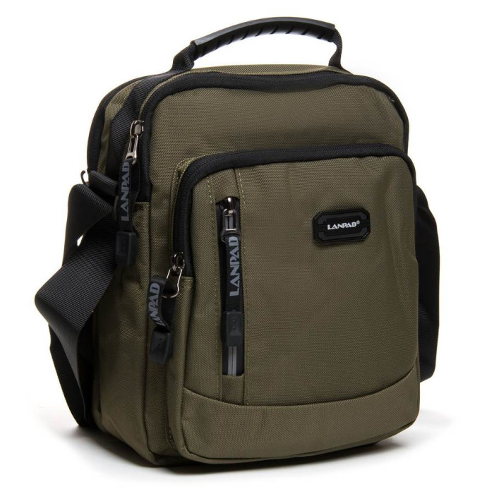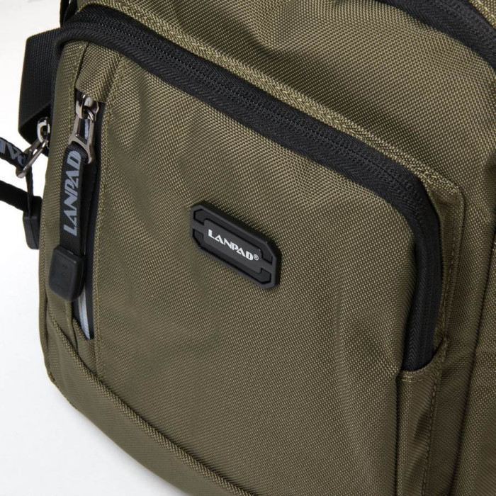 Мужская сумка Lanpad. Два отделения, закрываются на молнию. Внутри отделений есть карман на молнии и открытый карман. На фасаде расположены два кармана на молнии. Снаружи сумки на обратной стороне есть карман на молнии. Регулируемый плечевой ремень, шириной 4см.