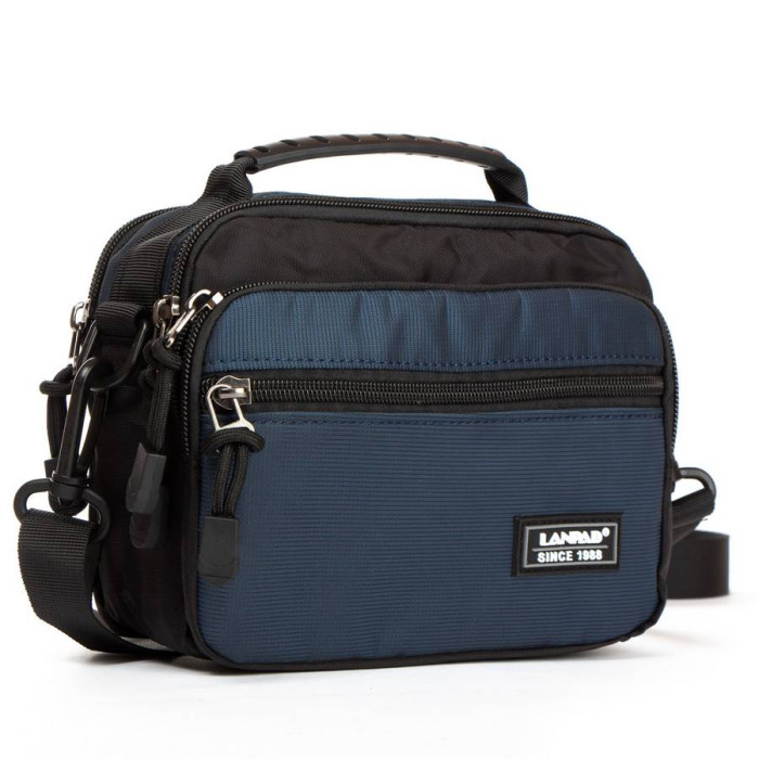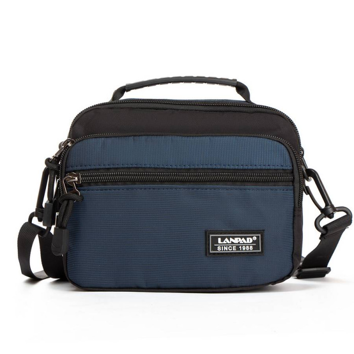 Мужская горизонтальная сумка Lanpad. Два отделения, закрываются на молнию. Внутри отделения есть карман на молнии. На фасаде находятся два кармана на молнии. На обратной стороне есть крепление для ношения сумки на поясе.