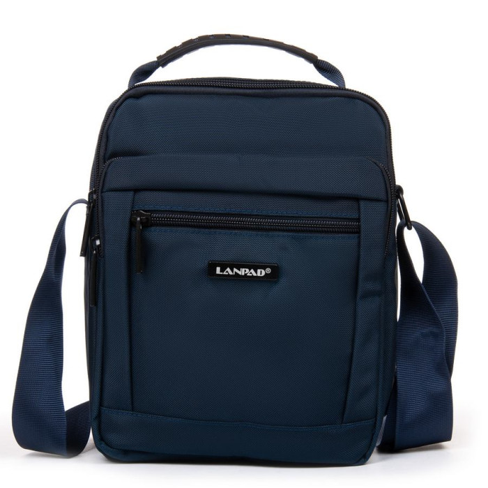 Мужская сумка-планшет Lanpad, плотное плетение. Два отделения, закрываются на молнию. Внутри есть карман на молнии и открытый боковой карман. На фасаде сумки находятся 2 больших кармана на молнии, а на обратной стороне есть один карман на молнии. Регулируемый плечевой ремень шириной 4см.