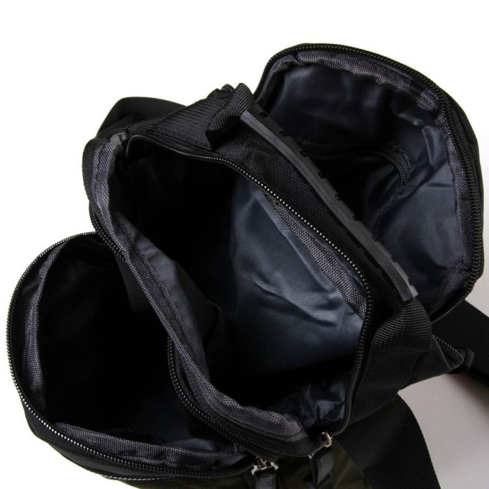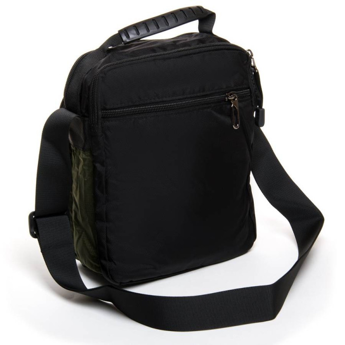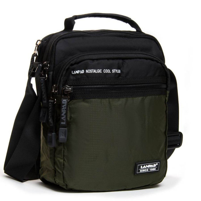 Мужская сумка Lanpad. Два отделения, закрываются на молнию. Внутри отделений расположен карман на молнии и открытый карман. На фасаде находятся 2 больших кармана на молнии, а на обратной стороне есть один карман на молнии. Регулируемый плечевой ремень шириной 4см..