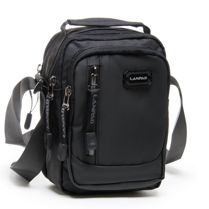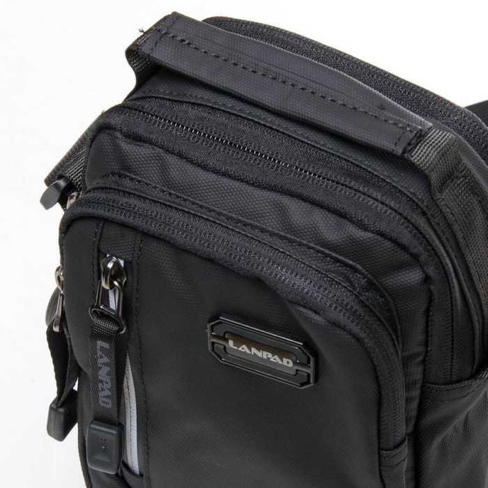 Мужская сумка Lanpad. Два отделения, закрываются на молнию. Внутри отделений есть карман на молнии. На фасаде находятся два кармана на молнии. В комплекте регулируемый плечевой ремень шириной 3см.