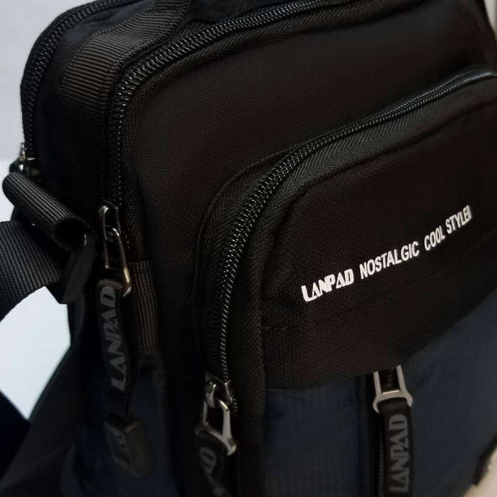 Мужская сумка-планшет Lanpad. Два отделения, закрываются на молнию. Внутри есть карман на молнии и открытый карман. На фасаде сумки находятся 2 карман на молнии и на обратной стороне есть один карман на молнии. Регулируемый плечевой ремень шириной 4см.