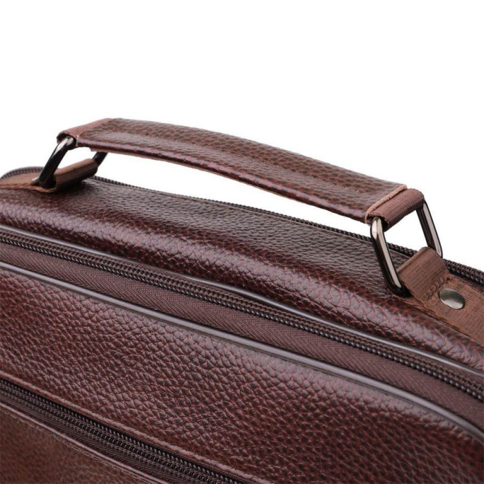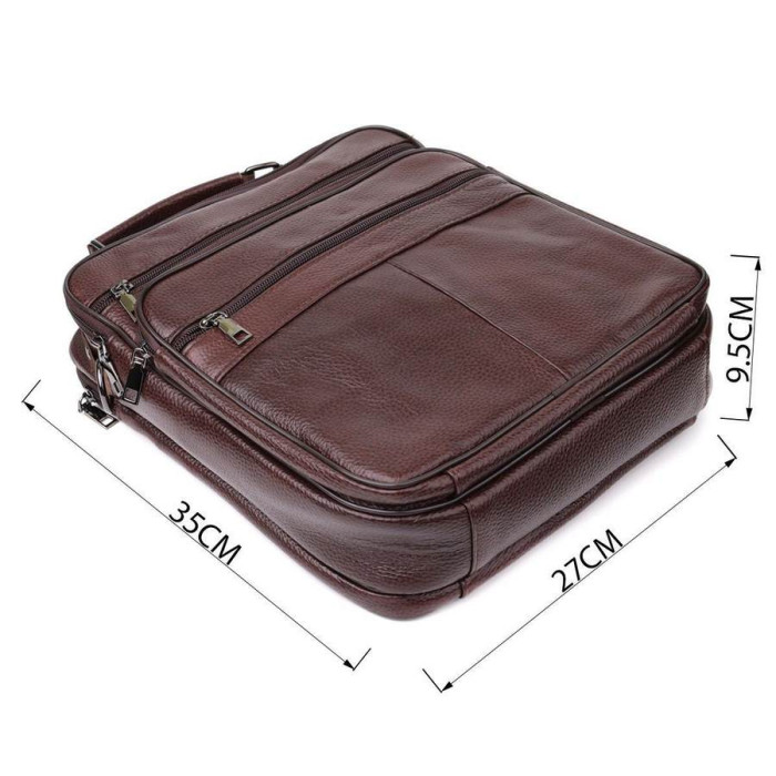 Сумка оснащена кожаной ручкой для переноски в руке и съемным регулируемым текстильным ремешком, который можно настроить по длине и носить сумку через плечо.