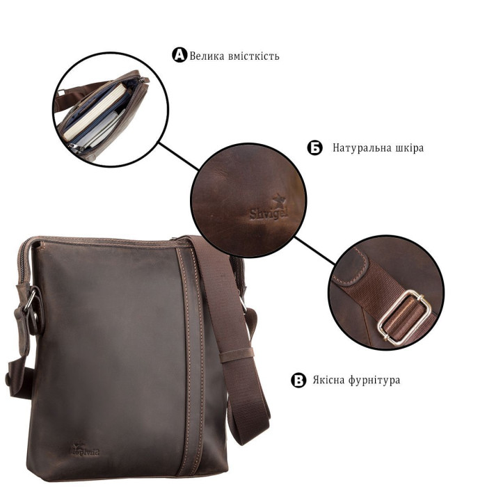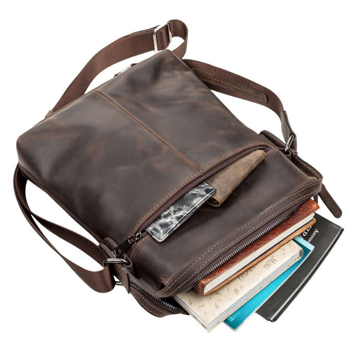 Надежная сумка для стильных мужчин выполнена из натуральной винтажной кожи, характерными признаками которой, являются: неоднородность окраса и потертости, которые придают изделию изысканного, индивидуального вида. Внутри: карман-перегородка на молнии, карман для телефона, отделения для ручек и мелочей,
