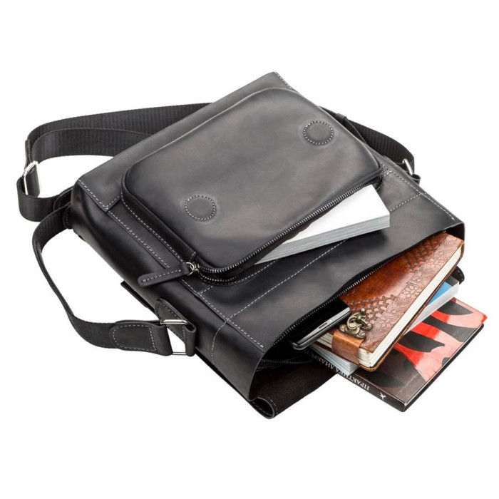 Интересная мужская сумка, из натуральной винтажной кожи, характерными признаками которой, являются: неоднородность окраса и потертости, которые придают изделию изысканного, индивидуального вида, с клапаном на магнитах, формата А4. Размер очень удобный. Особенность дизайна позволит мужчине носить с собой личные вещи, документы, много нужных мелочей. Внутри сумка разделена перегородкой на молнии на два отделения. В одном карман для телефона, визиток, отделения для ручек и держатель для ключей, карман на змейке. В другом отделение для планшета с уплотненной перегородкой.