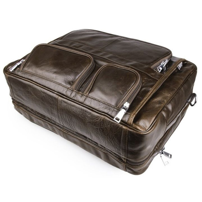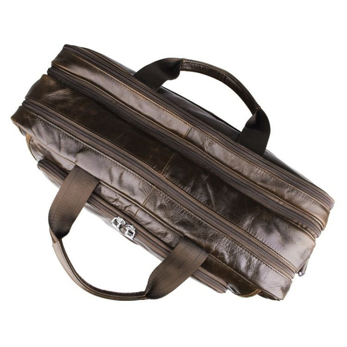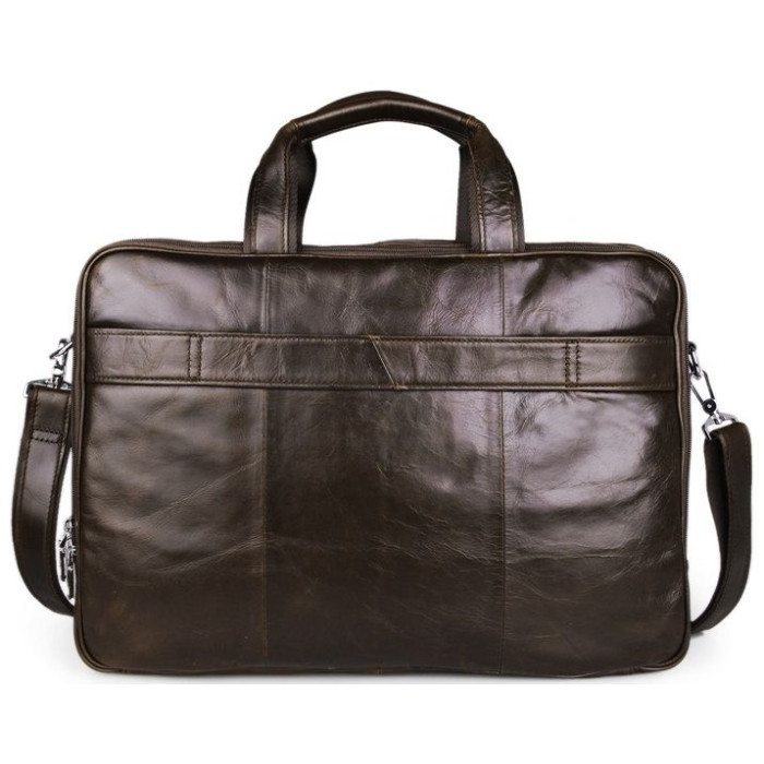 Большая мужская кожаная сумка с множеством отделений и карманов. Аксессуар можно переносить при помощи удобных ручек в руке, а также через плечо. На задней внешней стороне изделия расположена ручка с помощью, которой сумка при необходимости крепиться к чемодану. Цвет фурнитуры: серебро. Аксессуар можно использовать для носки папки с документами и ноутбука, а также как сумку для спортзала.