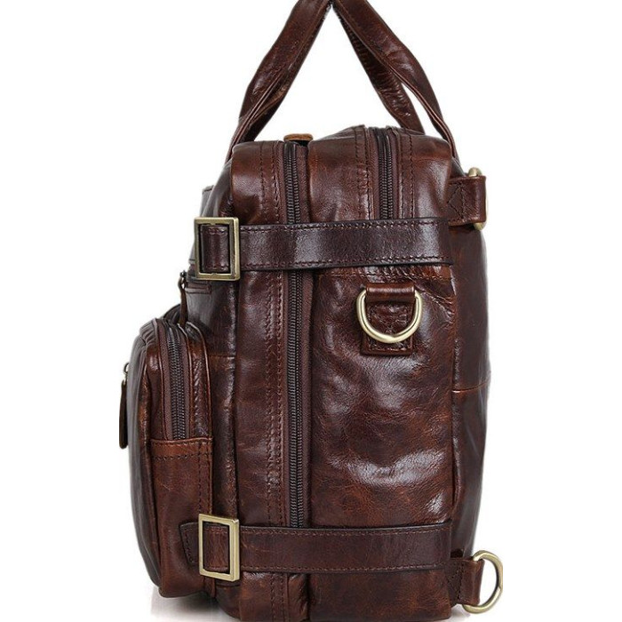 Оригинальная сумка-трансформер из натуральной гладкой кожи, мягкой и приятной на ощупь. Если Вы хотите приобрести действительно модный и оригинальный аксессуар из натуральной кожи, тогда Вам непременно необходима эта сумка. Она не просто вместительная и имеет множество удобных карманов и отделений, но и легко превращается из сумки в удобный красивый рюкзак. Приобретая эту великолепную модель, Вы не только можете создавать с ней разные образы - от прогулочного до стильно-делового, но и контролировать свое удобство и нагрузку на спину и плечи, меняя длину ремня и лямок.