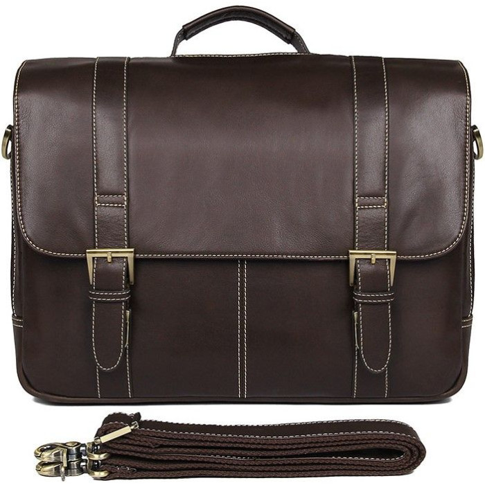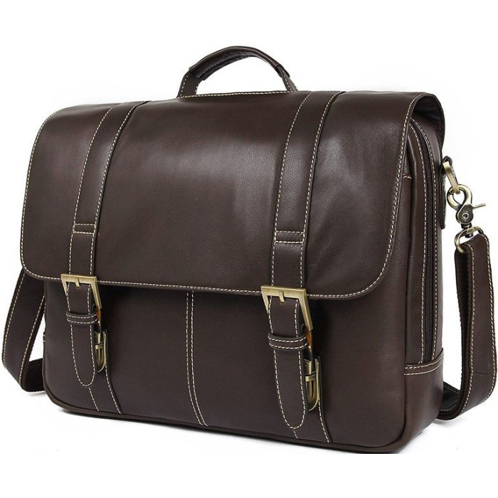 Элитная мужская сумка из натуральной высококачественной гладкой кожи. Цвет фурнитуры: латунь. Портфель закрывается при помощи кожаного клапана, на двух мехинических защелках. Такой кожаный аксессуар станет превосходным подарком любимому мужу, сыну, отцу или руководителю.