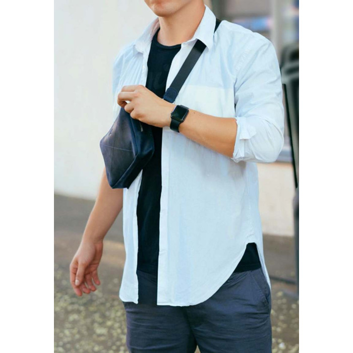Темный глубокий синий цвет сумки подойдет и мужчинам, и женщинам.