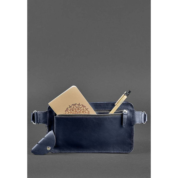 Изготовлен аксессуар из натуральной кожи краст в синем цвете. Эта кожа достаточно плотная (2 мм), имеет гладкую поверхность, устойчива к царапинам и потертостям.