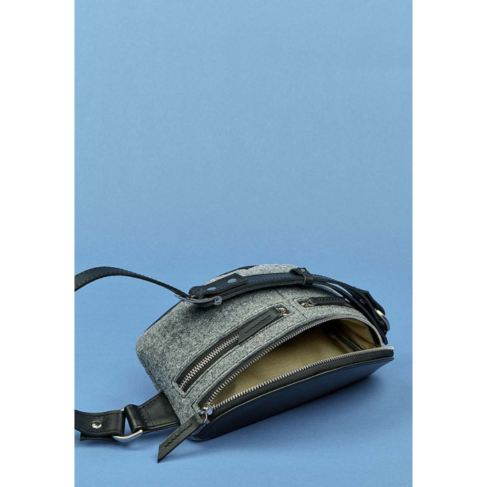 Текстуру и цвет фетра выгодно подчеркивают вставки из натуральной кожи в черном цвете. Сочетание черного цвета и серого, минималистический и лаконичный дизайн отображает эстетику и двойственность скандинавского стиля. Он сдержанный, но нескучный, понятный, но непростой.