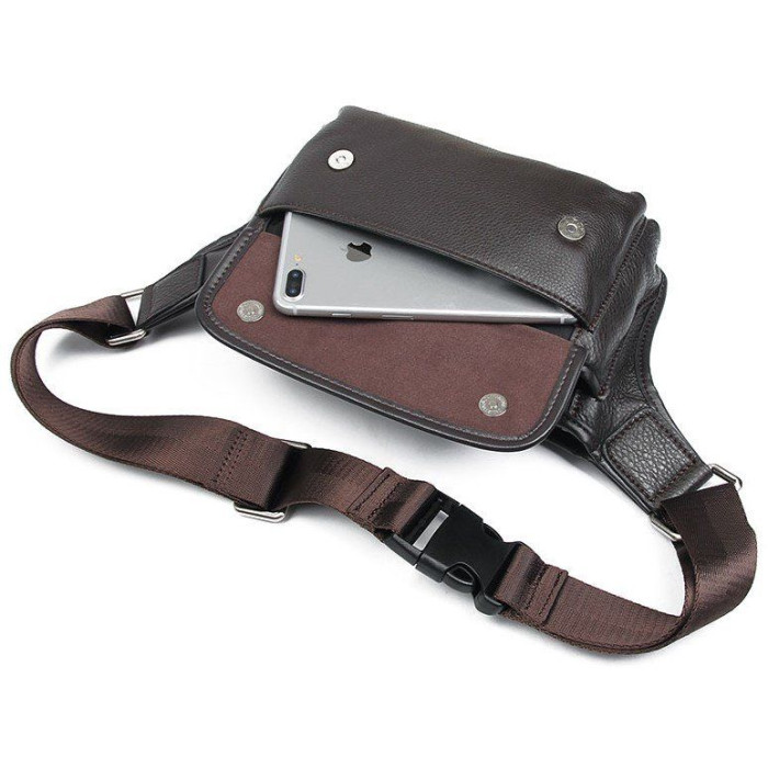 Поясные сумки отличаются особым удобством среди других моделей. За последние годы популярность таких сумок растет. Сумка выполнена из натуральной зернистой кожи. Такая сумка станет прекрасной заменой барсетке или клатчу. Особенно популярна такая модель в дороге, когда вы переживаете за свои личные вещи, и хотите чтобы все было под рукой и перед глазами. Бананка будет прекрасным подарком для любого мужчины и самое главное незаменимым.