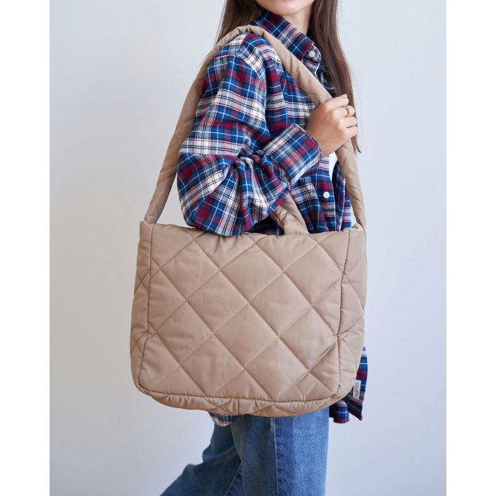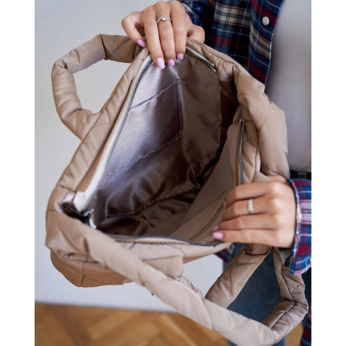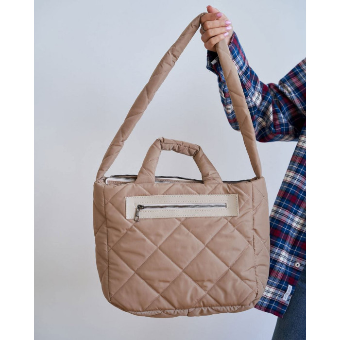 Нейлоновая женская стеганая молодежная сумка 67514 от производителя «Welassie» Украина из материалов высокого качества,цвет бежевый. Сумка открывается при помощи молнии. Внутри сумка на плотной подкладке. Сумка имеет два кармана: на молнии и открытый. Высота ручек 17 см., Длина плечевого ремня 84см.