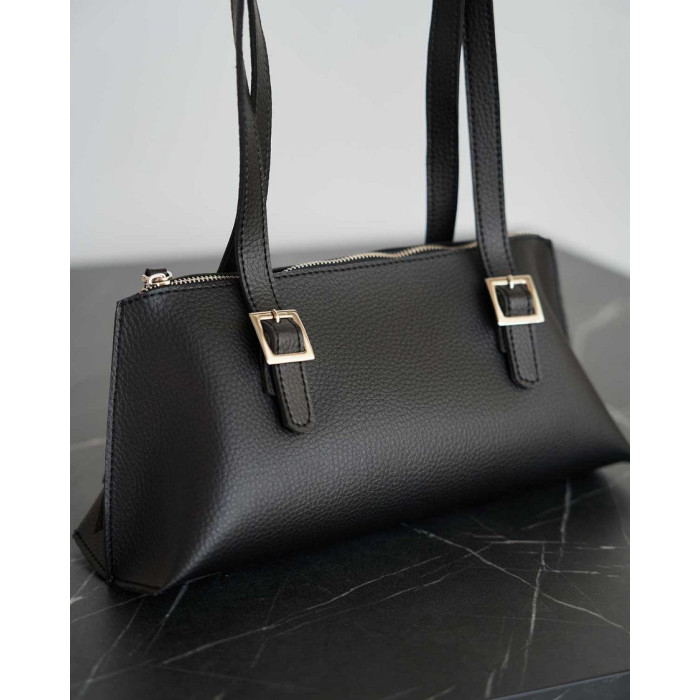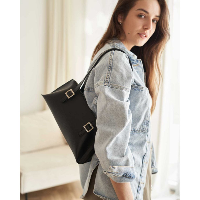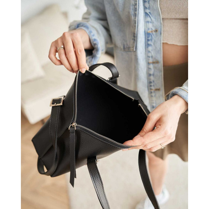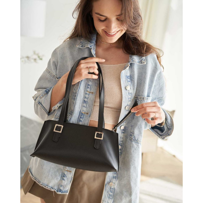 Сумка женская 11804 от производителя «Welassie» Украина, цвет черный, материал сумки экокожа. Сумка открывается при помощи молнии. Внутри сумка без подклада. Высота ручек регулируются благодаря протяжкам.