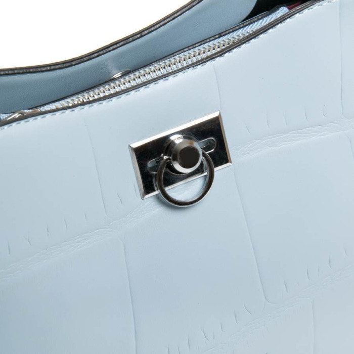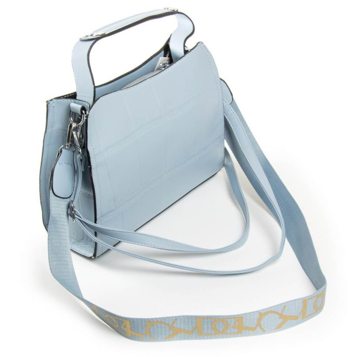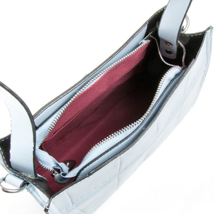 Женская сумочка Fashion. Три отделения. Центральное закрывается на молнию, а боковые на магнитную кнопку и декоративную застежку (на фасаде). Внутри находится боковой открытый карман. В комплекте регулируемый плечевой ремень и широкий ремень.