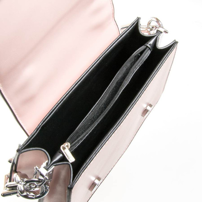 Женская компактная сумочка Fashion. Под клапаном находится двойное отделение, разделенное карманом-перегородкой на молнии. В комплекте регулируемый плечевой ремень, широкий ремень и ручка-цепочка.