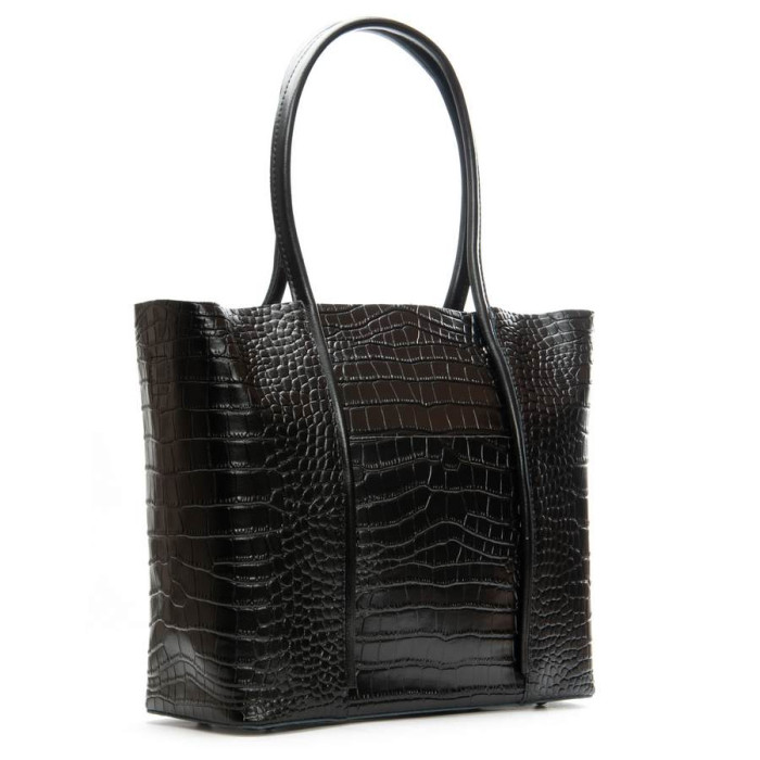 Закрывается на молнию. Внутри находится двойное отделение, разделенное карманом-перегородкой на молнии, открытый карман и боковой карман на молнии. Снаружи сумки на фасаде есть открытый карман, а на обратной стороне карман на молнии. Жесткое дно на металлических ножках.