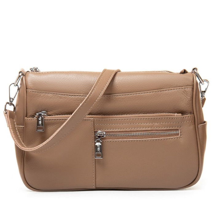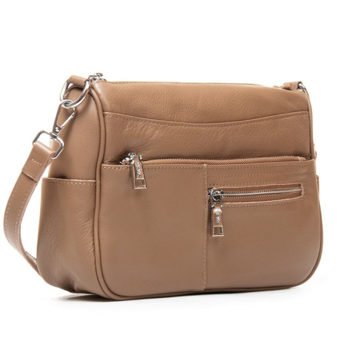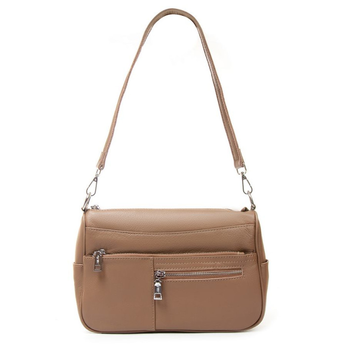 Женская компактная сумочка Alex Rai. Изготовлена из натуральной мягкой кожи. Закрывается на молнию. Внутри находится основное и дополнительное отделение, разделенное карманом-перегородкой на молнии, открытый большой карман и боковой карман на молнии. На фасаде расположеы два кармана на молнии, а на обратной стороне один карман. На торцах сумочки есть маленькие открытые карманы.