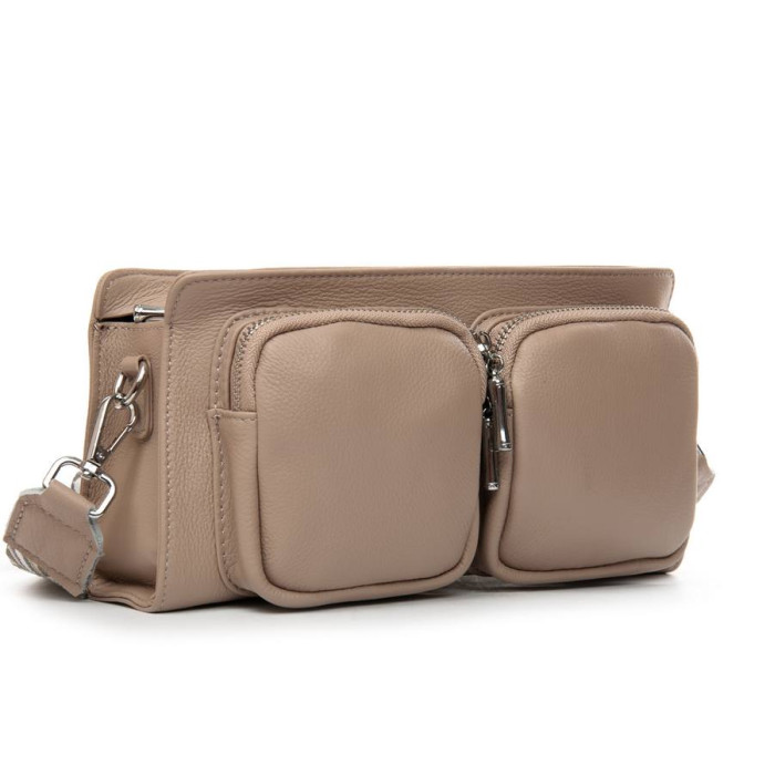 Женская кожаная сумочка Alex Rai. Изготовлена из натуральной мягкой кожи. Одно отделение, закрывается на молнию. Внутри находится боковой открытый карман и карман на молнии. Снаружи сумки на фасаде и обратной стороне расположены обьемные карманы на молнии. Дно сумки уплотненное.