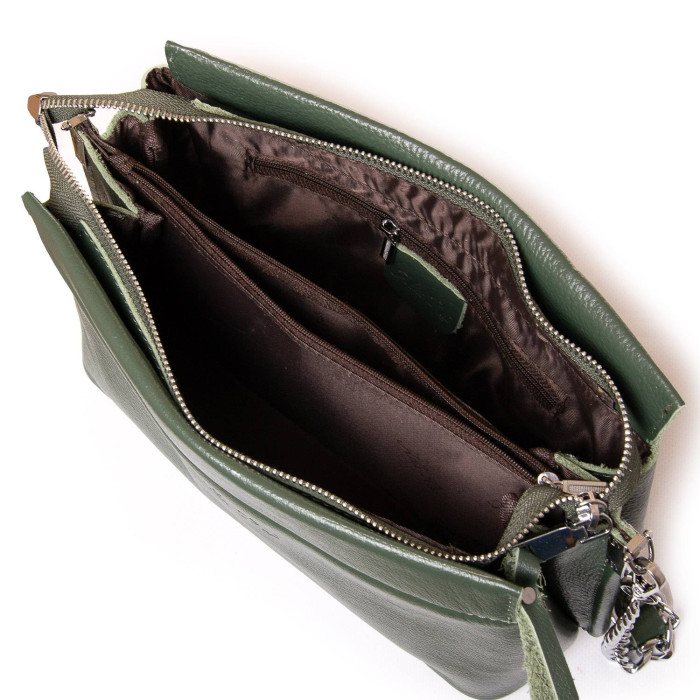 Женская компактная сумочка Alex Rai. Изготовлена из натуральной мягкой кожи. Закрывается на молнию. Внутри находится двойное отделение, разделенное карманом-перегородкой на молнии, открытый карман и боковой карман на молнии. На обратной стороне есть карман на молнии.