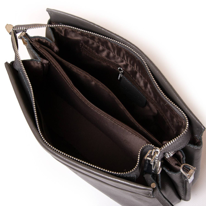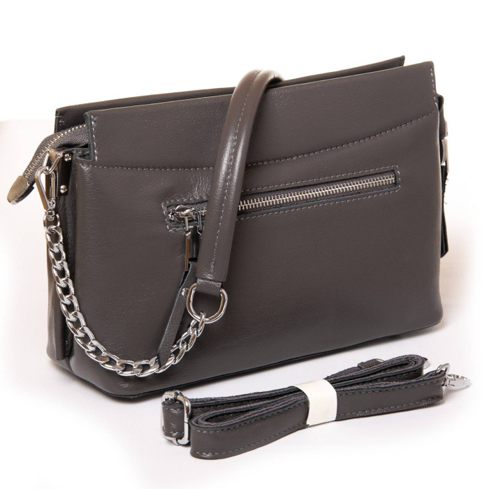 Женская компактная сумочка Alex Rai. Изготовлена из натуральной мягкой кожи. Закрывается на молнию. Внутри находится двойное отделение, разделенное карманом-перегородкой на молнии, открытый карман и боковой карман на молнии. На обратной стороне есть карман на молнии.
