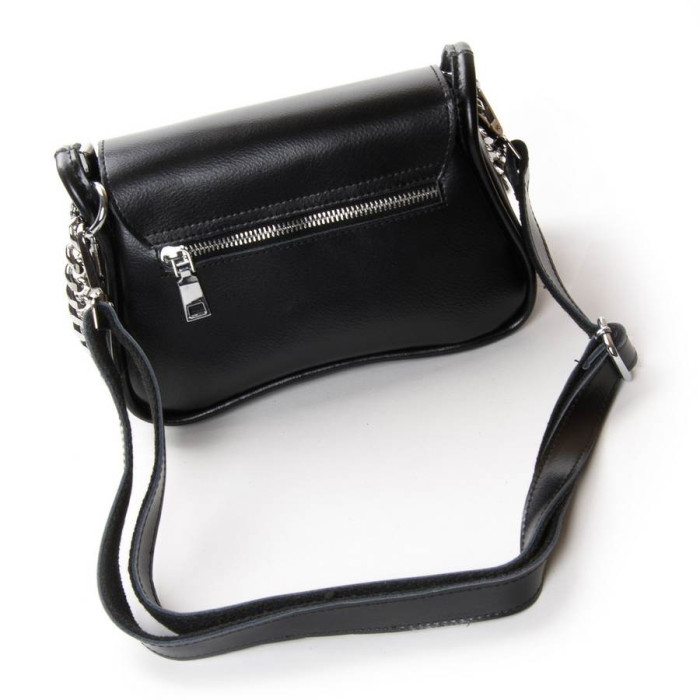 Женская сумочка Alex Rai. Изготовлена из натуральной плотной кожи. Под клапаном дополнительно закрывается на молнию. Внутри находится одно отделение, открытый карман и карман на молнии. На обратной стороне есть карман на молнии. В комплекте регулируемый плечевой ремень и сьемная ручка-цепочка.