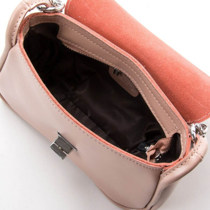 Женская сумочка Alex Rai. Изготовлена из натуральной плотной кожи. Под клапаном дополнительно закрывается на молнию. Внутри находится одно отделение, открытый карман и карман на молнии. На обратной стороне есть карман на молнии. В комплекте регулируемый плечевой ремень и сьемная ручка-цепочка.
