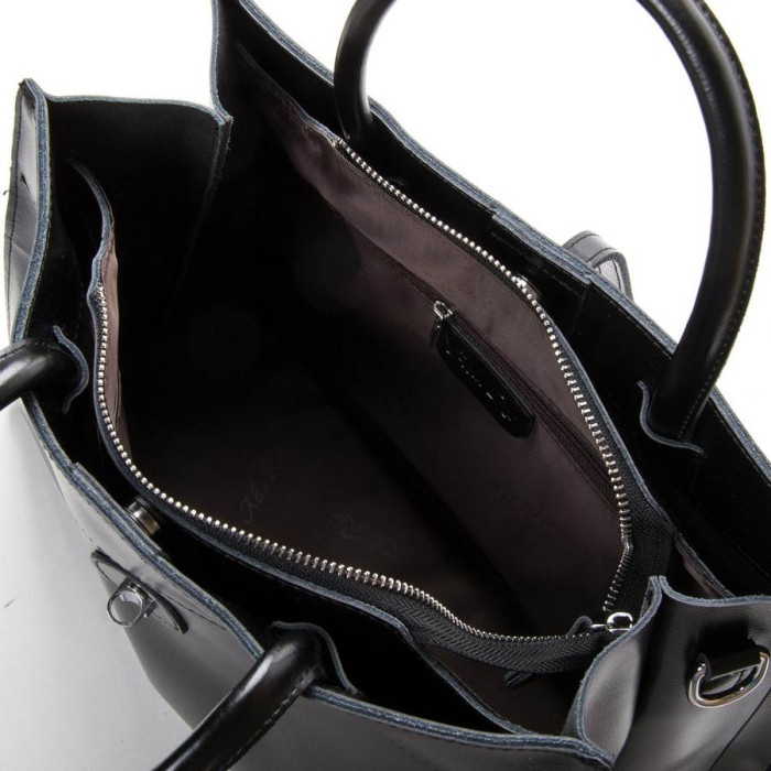 Женская сумка Alex Rai. Изготовлена из натуральной плотной кожи. Три отделения: центральное закрывается на молнию, а боковые на магнитные кнопки. Внутри центрального отделения есть двойной открытый карман и карман на молнии. Снаружи сумки, на обратной стороне есть карман на молнии. Дно сумки жесткое, с металлическими ножками. В комплекте регулируемый плечевой ремень.