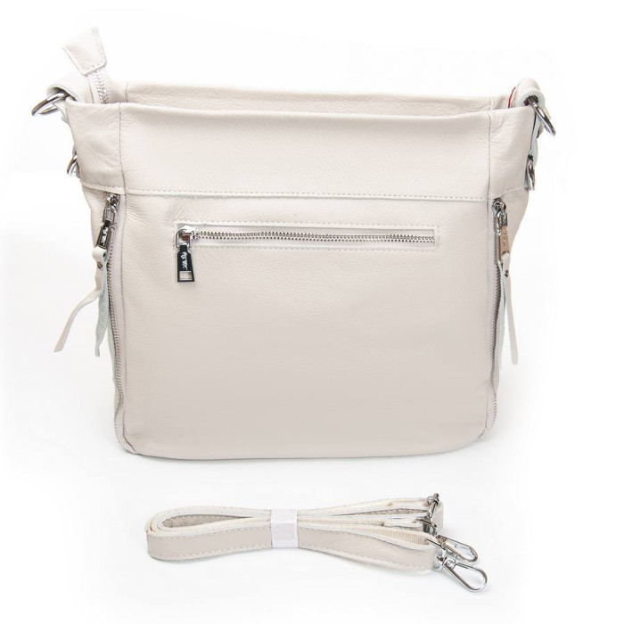 Женская кожаная сумка Alex Rai. Изготовлена из натуральной мягкой кожи. Закрывается на молнию. Внутри находится двойное отделение, разделенное карманом-перегородкой на молнии, двойной открытый карман и боковой карман на молнии. Снаружи сумки на фасаде и обратной стороне расположены карманы на молнии.