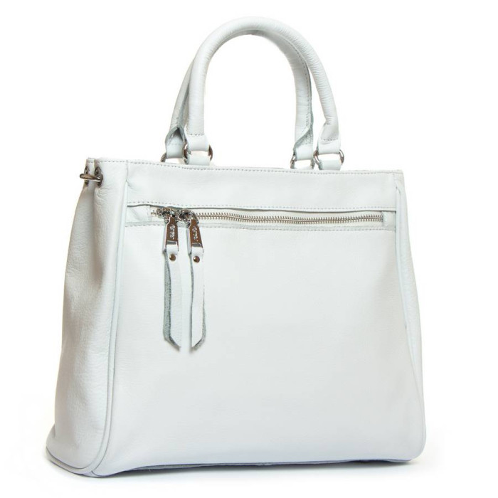 Женская кожаная сумка Alex Rai. Изготовлена из натуральной мягкой кожи. Закрывается на молнию. Внутри находится двойное отделение, разделенное карманом-перегородкой на молнии, открытый карман и боковой карман на молнии. Снаружи сумки на фасаде и обратной стороне есть большие карманы на молнии. Уплотненное дно на металлических ножках.