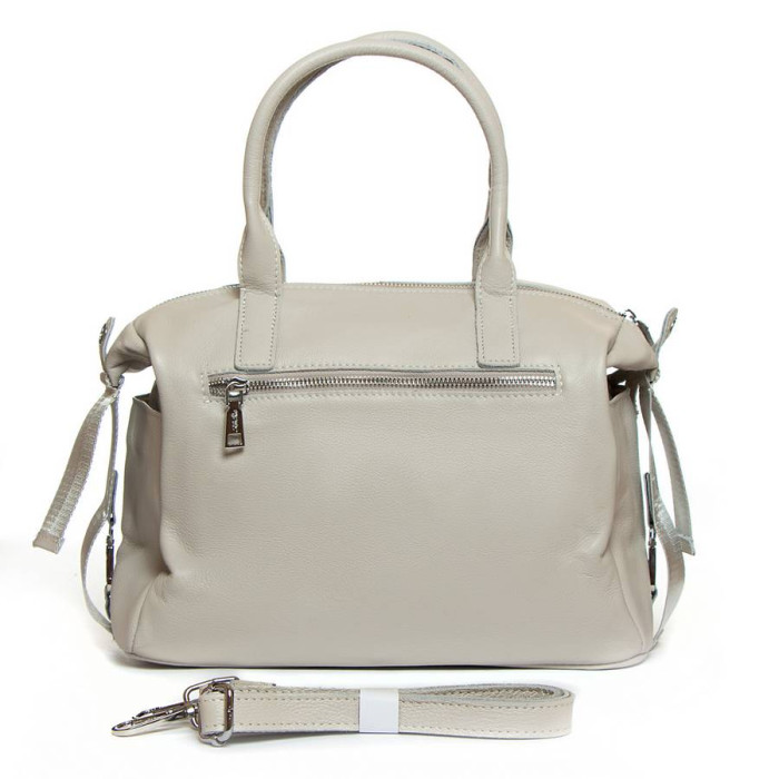 Женская кожаная сумка Alex Rai. Изготовлена из натуральной мягкой кожи. Закрывается на молнию. Внутри находится основное и дополнительное отделение, разделенное карманом-перегородкой на молнии, боковой открытый карман и карман на молнии. Снаружи сумки, на фасаде и обратной стороне расположены карманы на молнии. На торцах сумки есть небольшие открытые карманы. Жесткое дно.